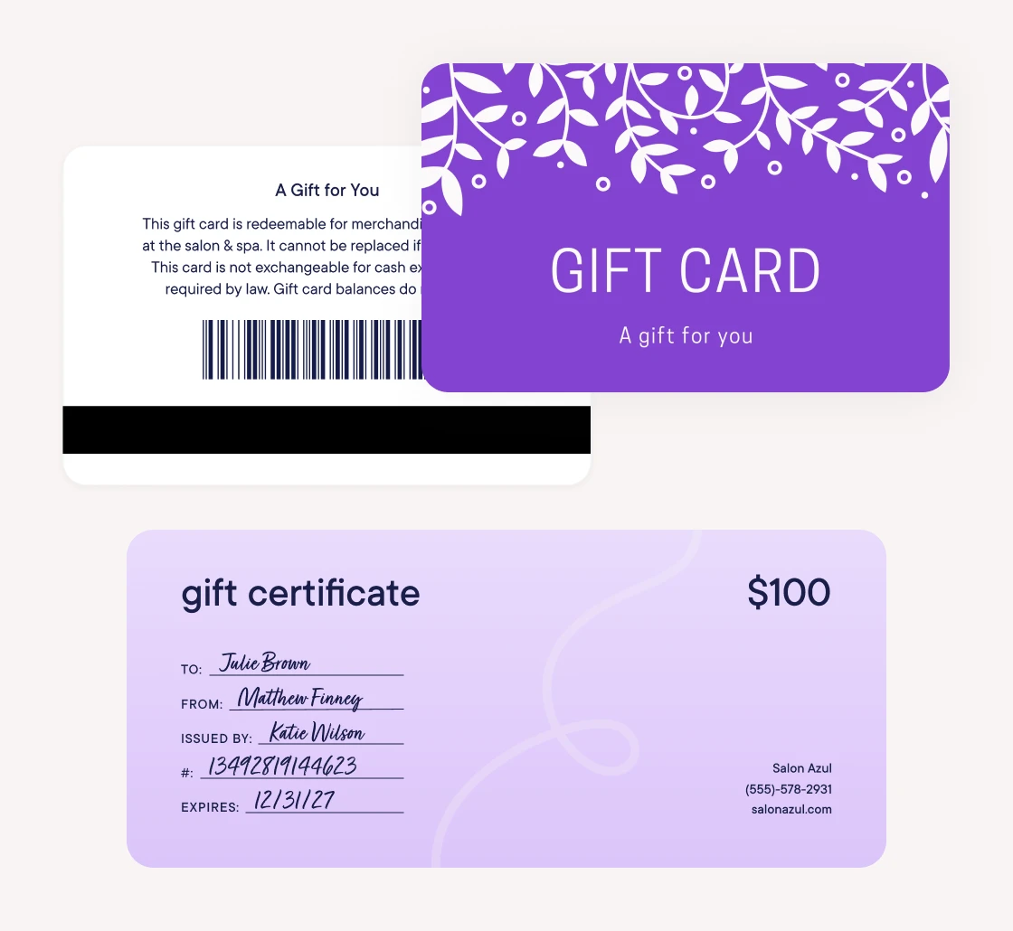 Our digital gift card feature allows you to track gift card sales and usage within Mangomint to keep all of your gift card data in one place.