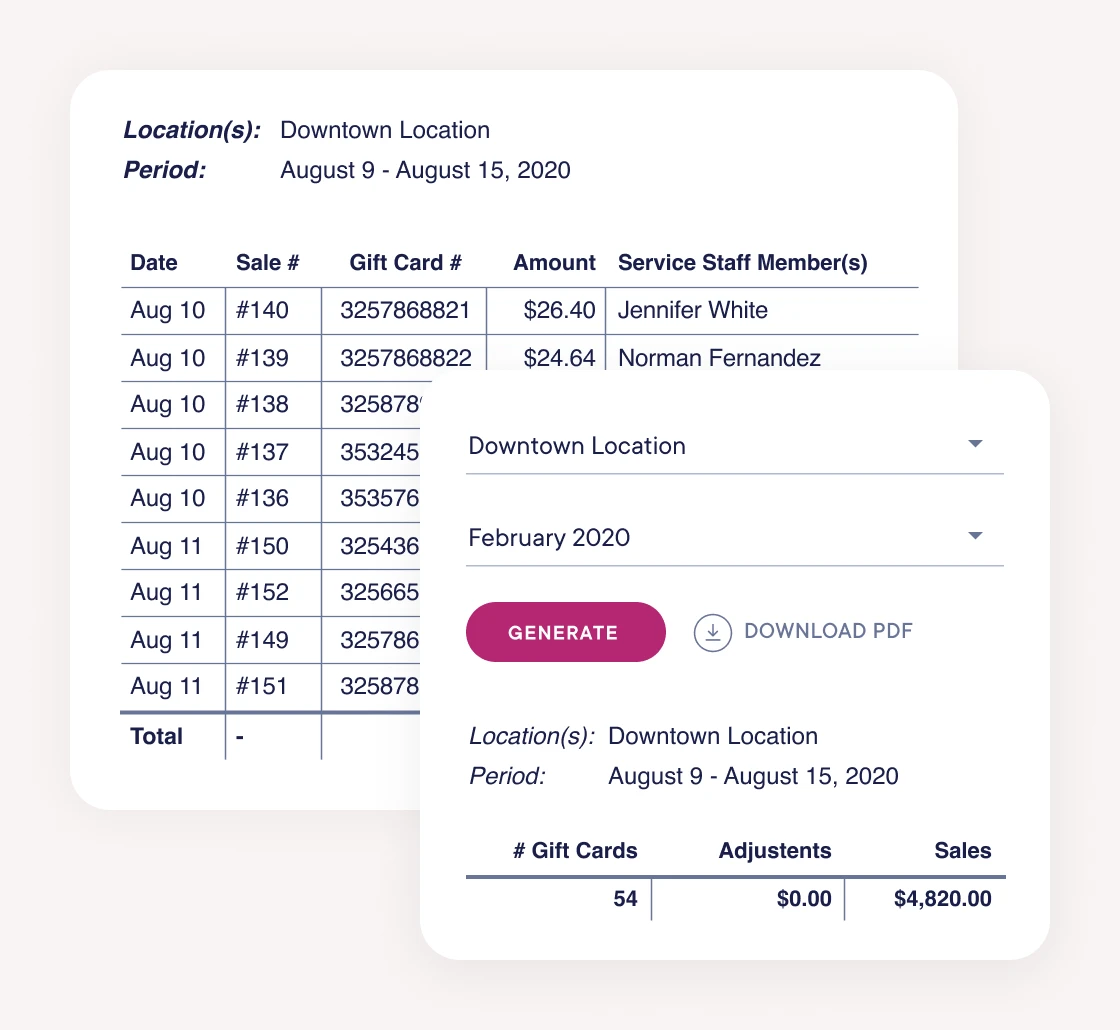 View gift card sales totals and adjustments that occur within a custom time period with our gift card sales report.