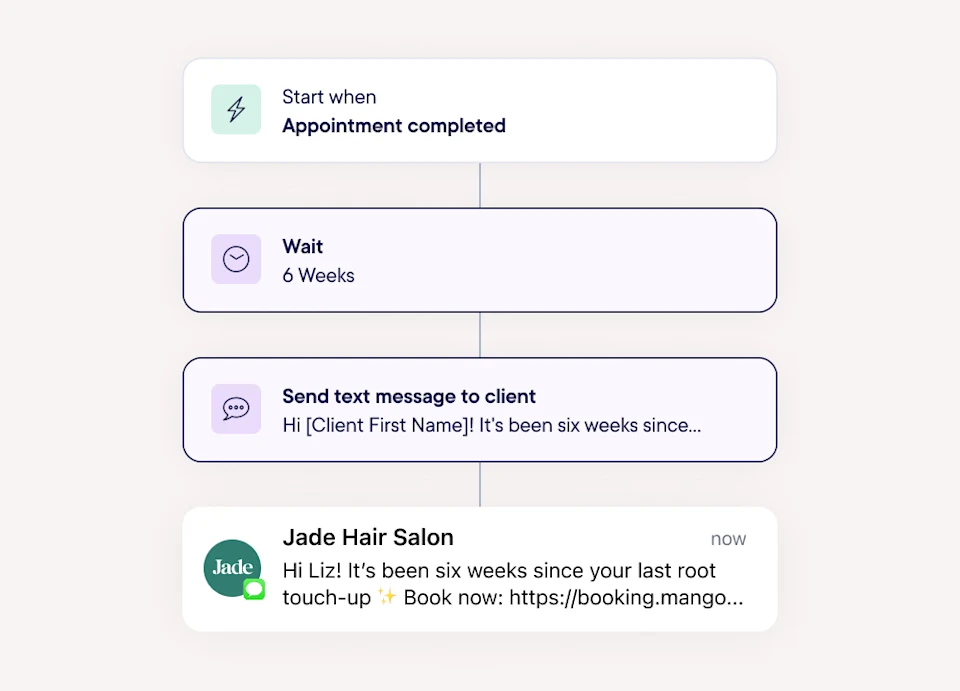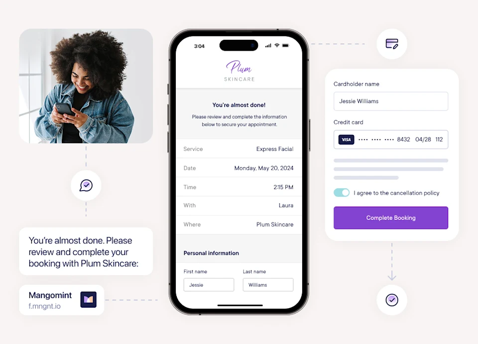 Mangomint offers solutions to help you automate taking appointment requests over the phone, following up with clients, and checking people in (and more).